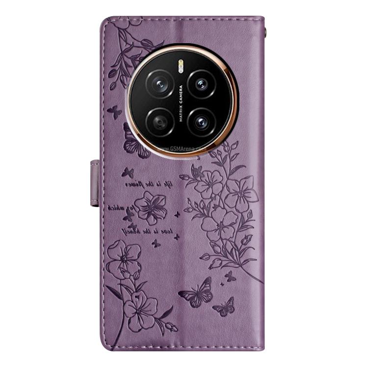 Funda de Cuero para Honor Magic7 Pro con Mariposas y Flores (Morada)