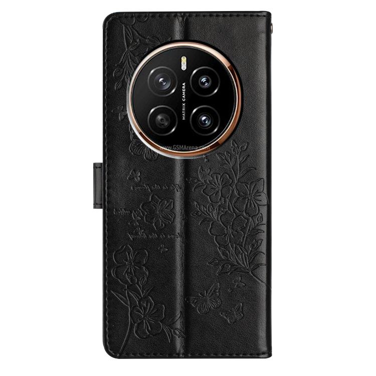 Funda de Cuero para Honor Magic7 Pro con Mariposas y Flores (Negra)