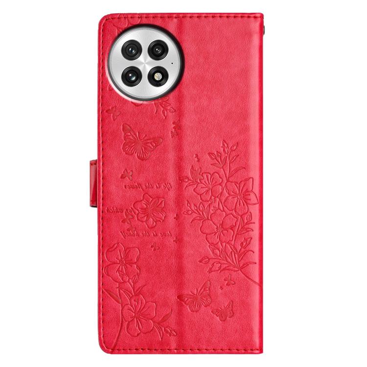 Funda de Cuero para OnePlus 13 con Mariposas y Flores (Roja)