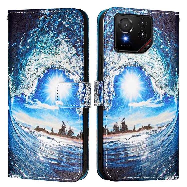 Funda de Cuero para Asus Rog Phone 9/9 Pro con Patrón de Dibujo Ondas y Sol
