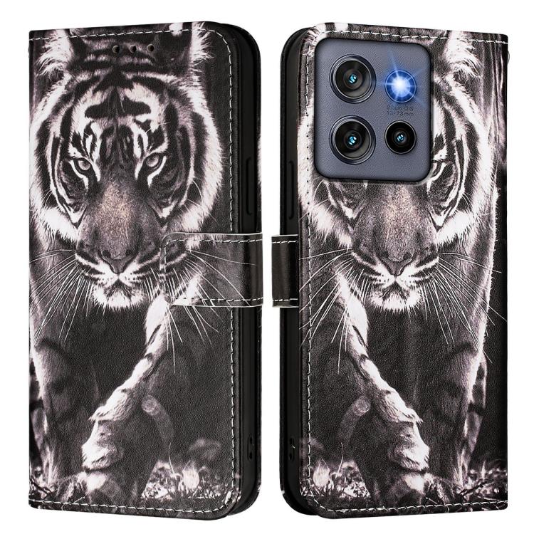 Funda de Cuero Motorola Moto G Stylus 5G 2025 con Patrón Tigre (Blanco y Negro)
