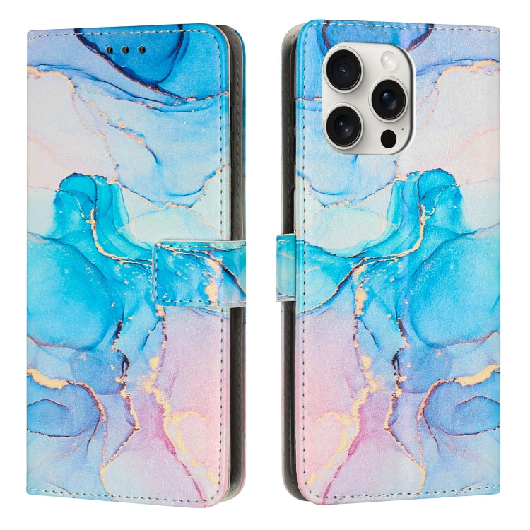 Funda de Cuero para iPhone 16 Pro Max Patrón Mármol Pintado (Rosa y Verde)