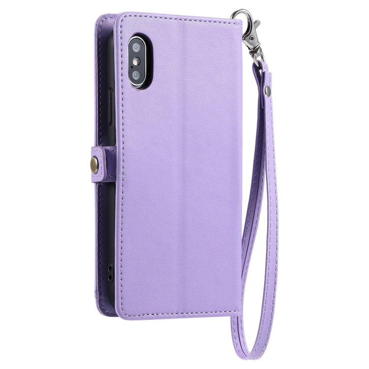 Funda de Cuero con Ranura para Múltiples Tarjetas y Cordón para iPhone Xs Max (Morado)