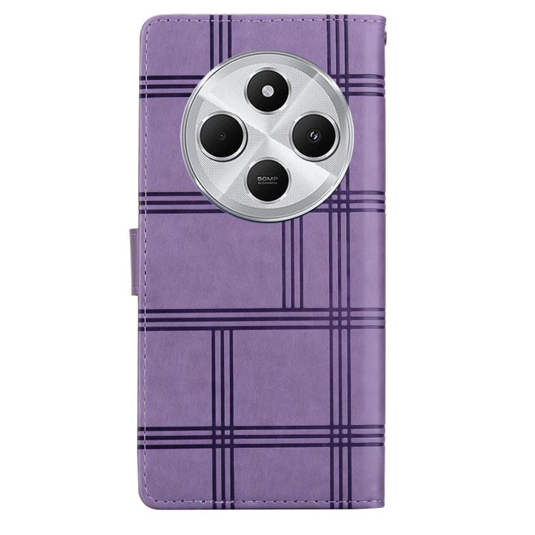 Funda de cuero con relieve a cuadros para Redmi 14C 5G (morada)