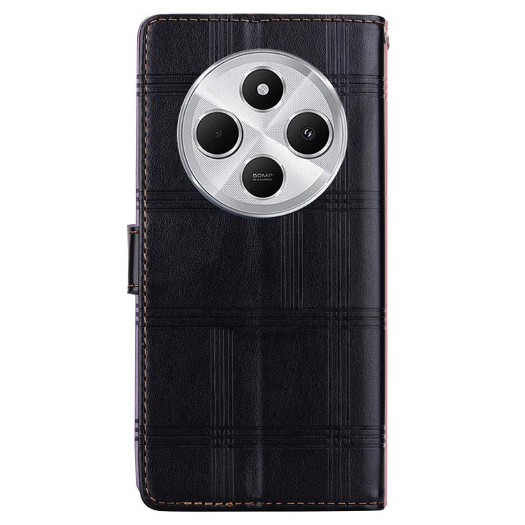 Funda de cuero con relieve a cuadros para Redmi 14C 5G (negra)