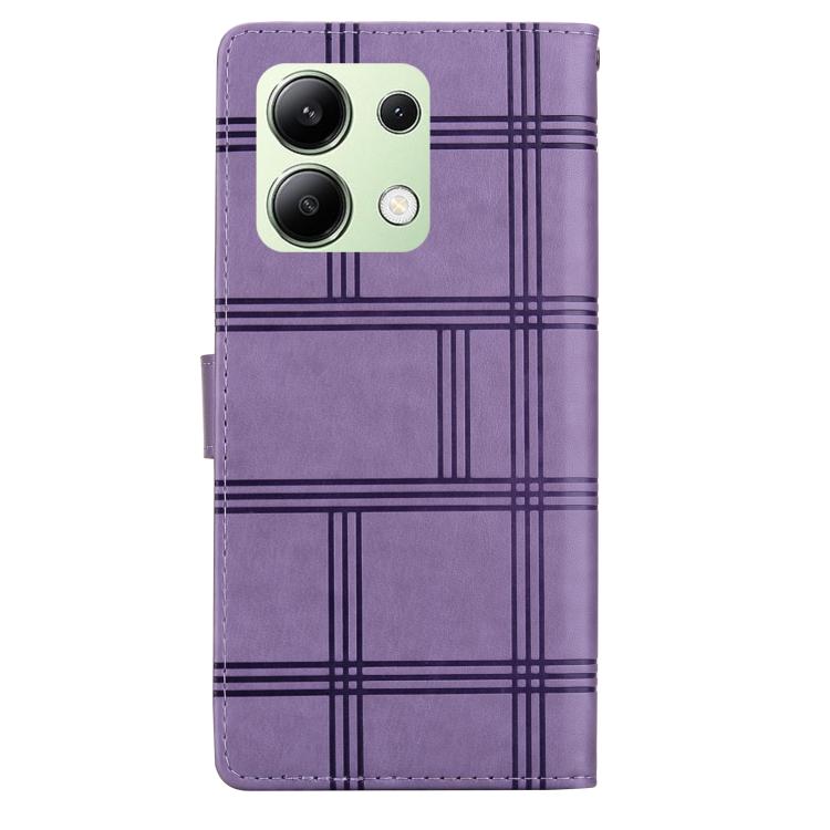 Funda de cuero con relieve a cuadros para Redmi Note 13 4G (morado)