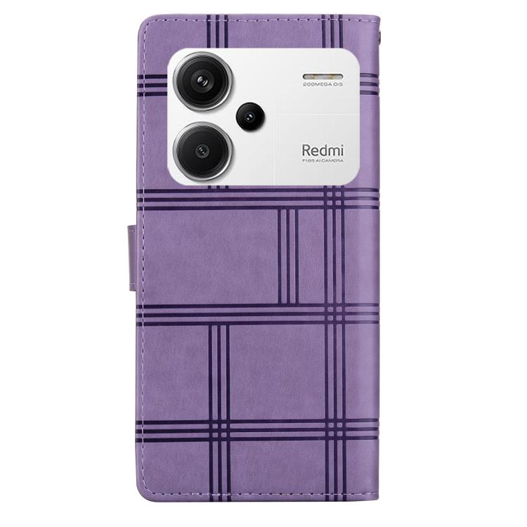 Funda de cuero con relieve a cuadros para Redmi Note 13 Pro+ (morado)