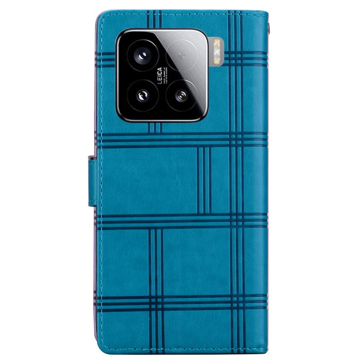 Funda de cuero con relieve a cuadros para Xiaomi 15 (azul)