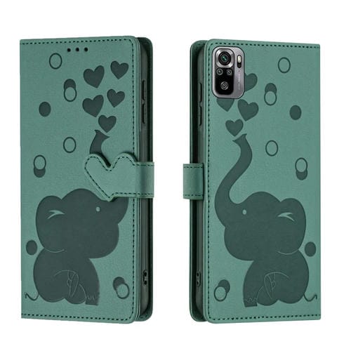 Funda de Cuero con Relieve de Elefante de Dibujos Animados para Redmi Note 10/Note 10S (Verde)