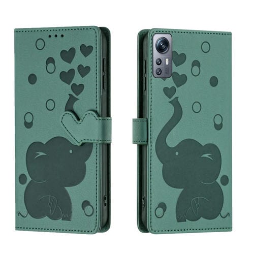 Funda de Cuero con Relieve de Elefante de Dibujos Animados para Redmi Note 12S 4G (Verde)