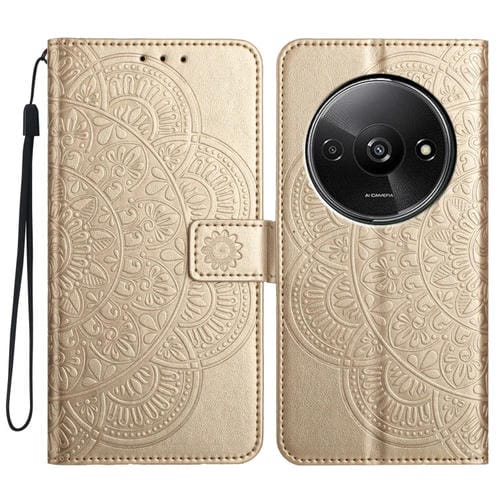 Funda de Cuero con Relieve Floral para Redmi A3 (Dorada)
