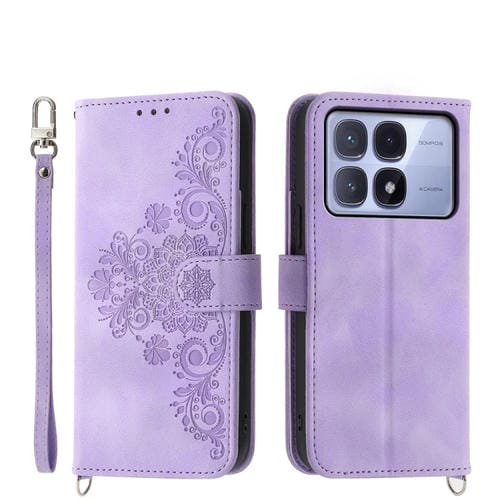 Funda de Cuero con Relieve de Flores y Tacto de Piel para Redmi K70 Ultra (Morado)