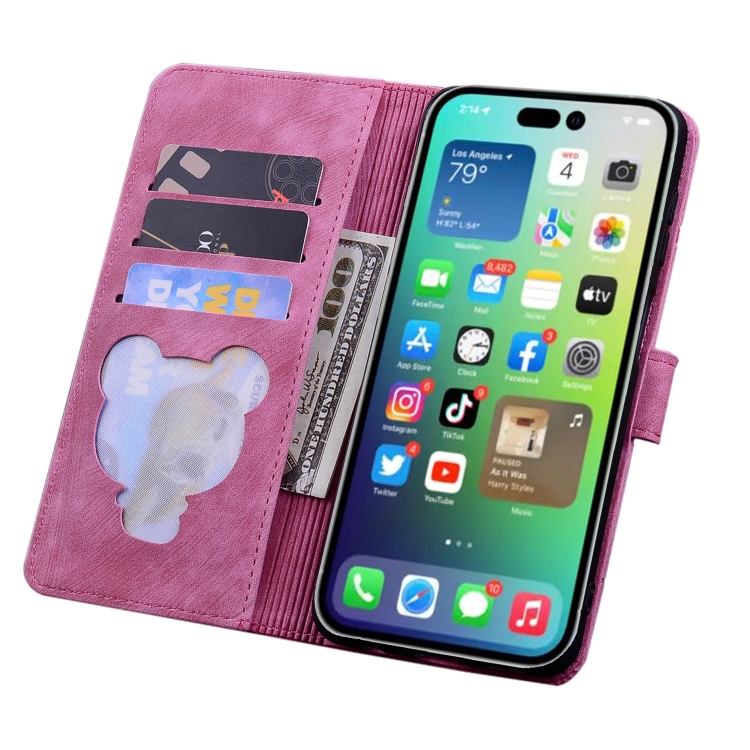 Funda de Cuero con Relieve de Gato Sakura para iPhone 16 Pro Max (Rosa Rojo)