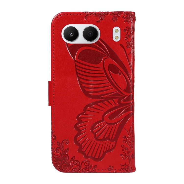 Funda de Cuero con Relieve Mariposa en Forma Cola de Golondrina para OnePlus Nord 4 5G (Rojo)