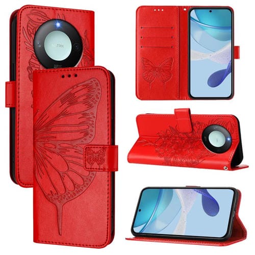Funda de Cuero con Relieve de Mariposa para Honor X9C Smart Global (Roja)