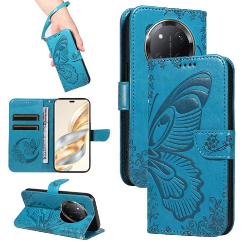 Funda de Cuero con Relieve de Mariposa para Honor X9C 5G (Azul)
