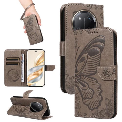 Funda de Cuero con Relieve de Mariposa para Honor X9C 5G (Gris)