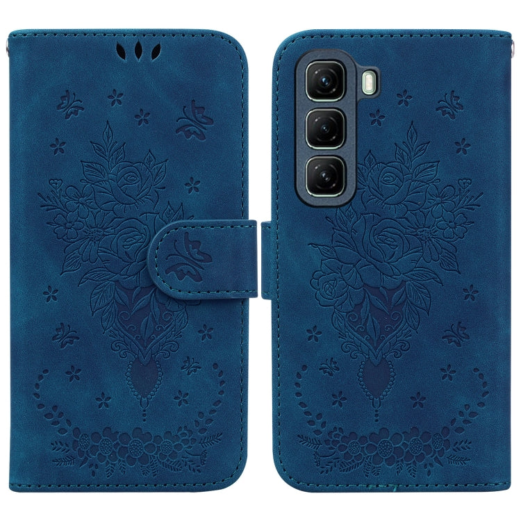 Funda de Cuero con Relieve Mariposa y Rosa para Infinix Hot 50 4G (Azul)