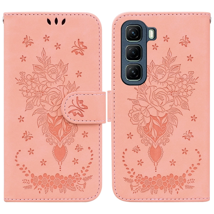 Funda de Cuero con Relieve Mariposa y Rosa para Infinix Hot 50 4G (Rosa)
