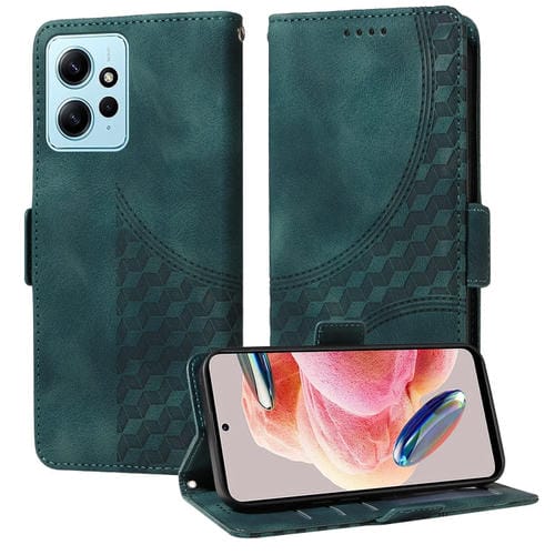 Funda de Cuero con Relieve de Rombos y Estrellas para Redmi Note 12 4G (Verde)
