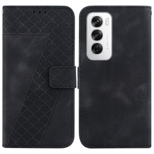 Funda de Cuero con Relieve En Forma de 7 para Oppo Reno12 5G Global (Negra)