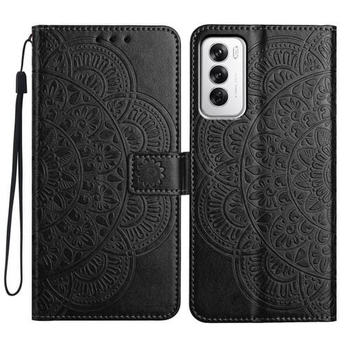 Funda de Cuero con Relieve Floral para Oppo Reno12 Global (Negra)