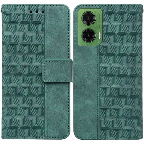 Funda de Cuero con Relieve Geométrico para Motorola Moto G35 (Verde)
