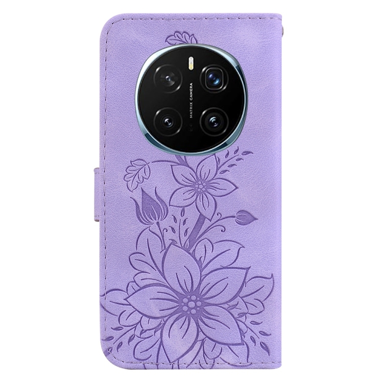 Funda de Cuero con Relieve Lily para Honor Magic7 Pro (Morado)
