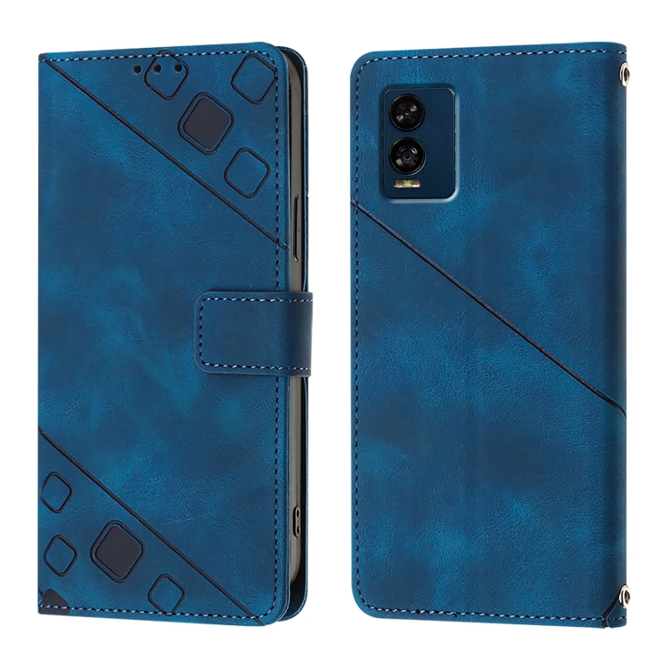 Funda de Cuero con Relieve para Blu View Speed 5G (Azul)