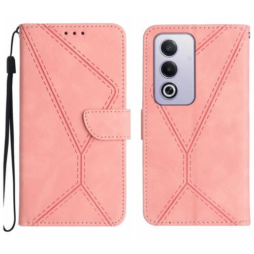 Funda de Cuero con Relieve y Costuras para Oppo A3 Pro 5G India/K12X 5G Global (Rosa)