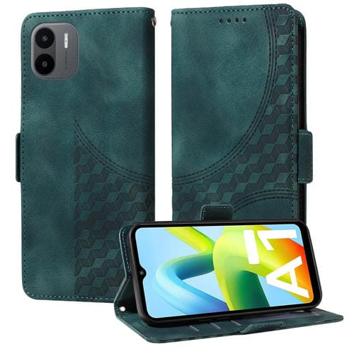 Funda de Cuero con Rombos En Relieve y Estrellas para Redmi A1 4G/A2 4G (Verde)