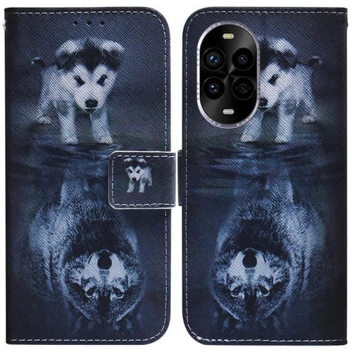 Funda de Cuero con Tapa para Huawei Nova 13 Pro con Dibujo Colorido (Lobo y Perro)