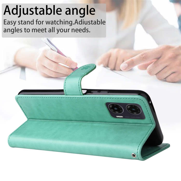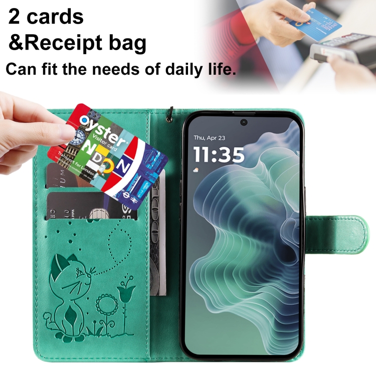 Funda de Cuero con Tapa para Motorola Moto G35 con Diseño de Gato y Abeja (Verde)