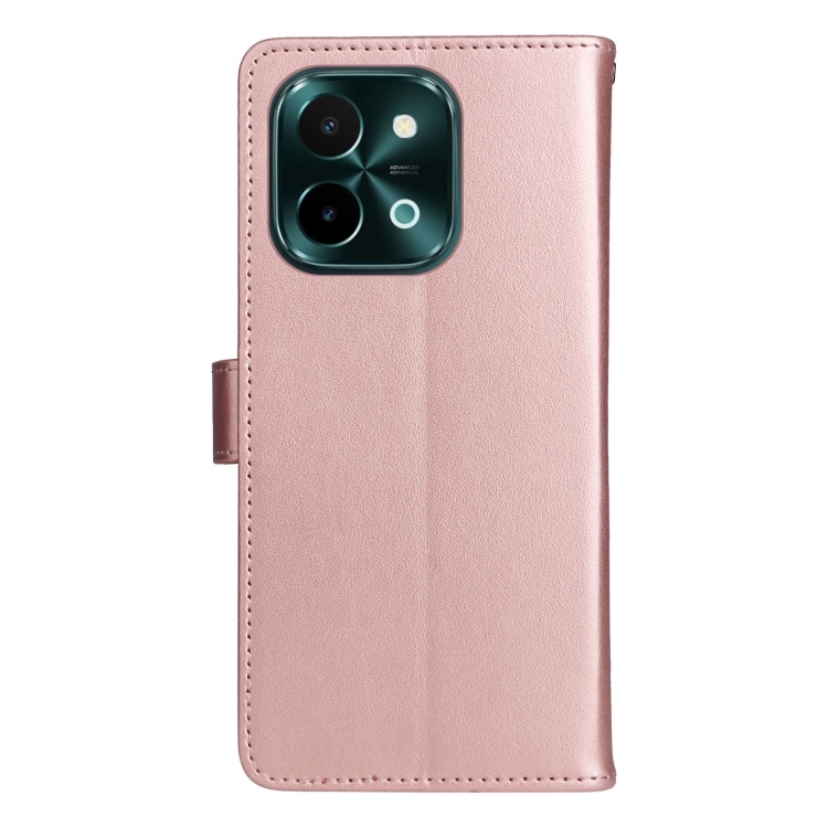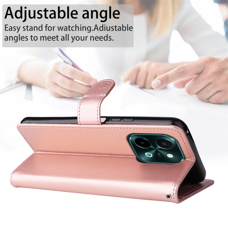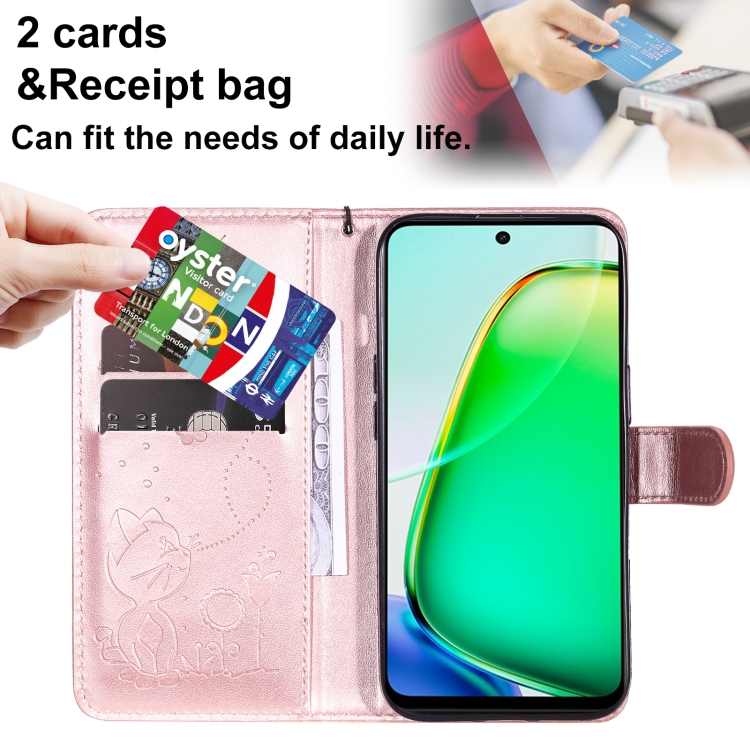 Funda de Cuero con Tapa con Diseño de Gato y Abeja En Relieve para Vivo Y28 4G (Oro Rosa)