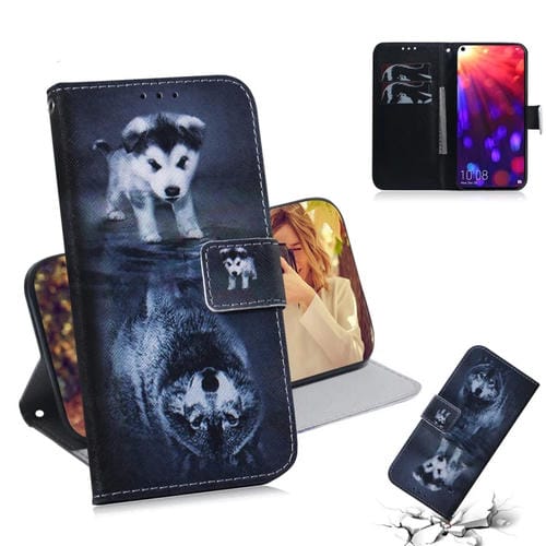 Funda de Cuero con Tapa Horizontal para Huawei Honor View 20 con Soporte y Ranuras (Lobo y Perro)