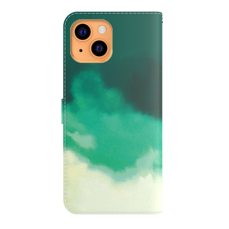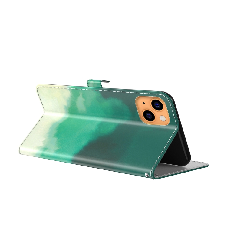 Funda de Cuero con Tapa Horizontal para iPhone 13 Mini con Soporte Ranura Tarjeta Billetera (Verde Cian)