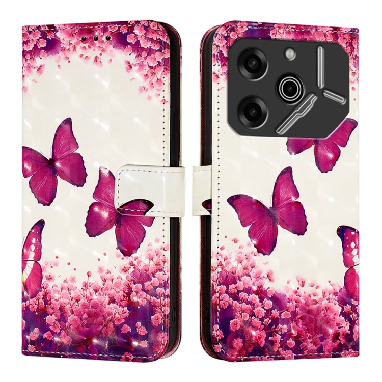 Funda de Cuero con Tapa Horizontal y Pintura 3D para Tecno Pova 6 5G y Pova 6 Pro (Mariposa Rosa)