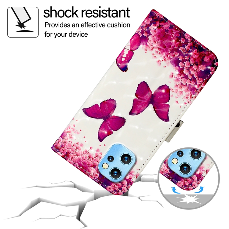 Funda de Cuero con Tapa Horizontal con Pintura 3D para Umidigi Power 7 Max (Mariposa Rosa)