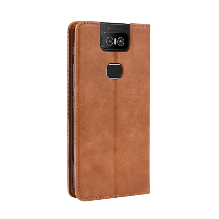 Funda de Cuero con Tapa Horizontal y Hebilla Magnética para Asus Zenfone 6 Zs630Kl con Soporte y Ranuras para Tarjetas (Marrón)