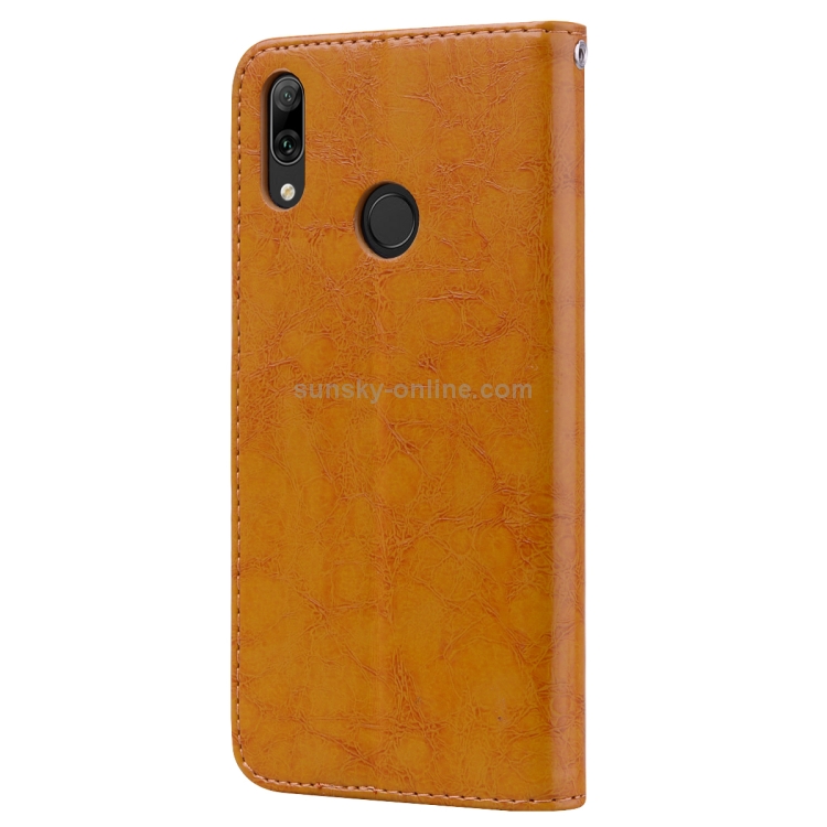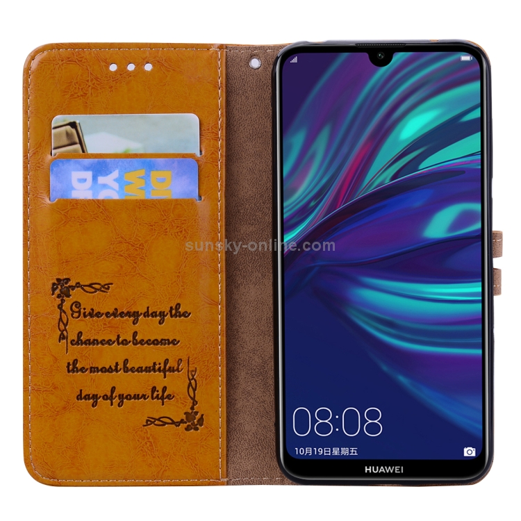 Funda de Cuero con Tapa Horizontal Huawei Y7 (2019) Soporte Ranuras Tarjetas Billetera (Marrón)