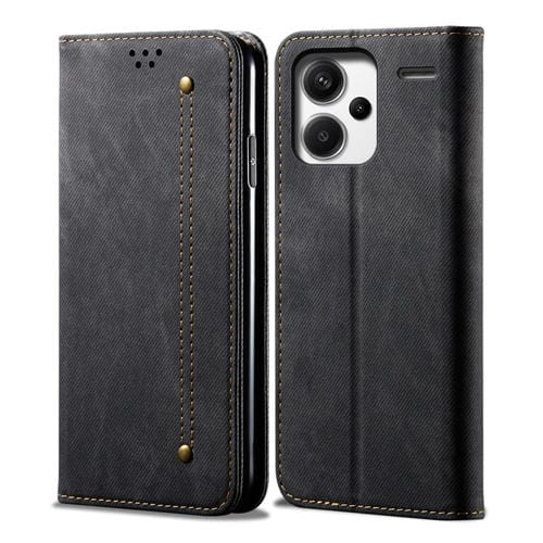 Funda de Cuero con Tapa Horizontal y Textura Vaquera para Redmi Note 13 Pro+ (Negro)