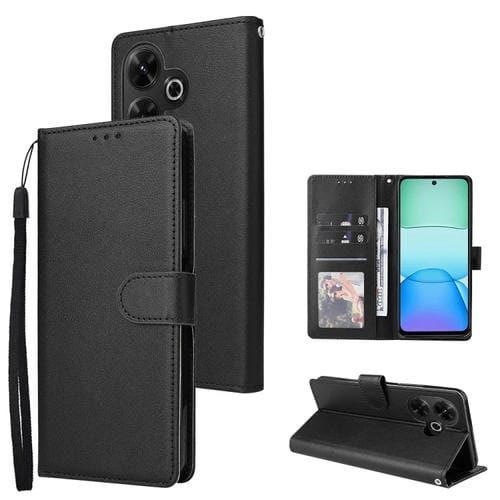 Funda de Cuero con Tapa Horizontal Multifuncional para Teléfono Xiaomi Redmi 13 4G con Ranura para Tres Tarjetas (Negro)