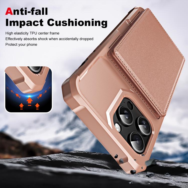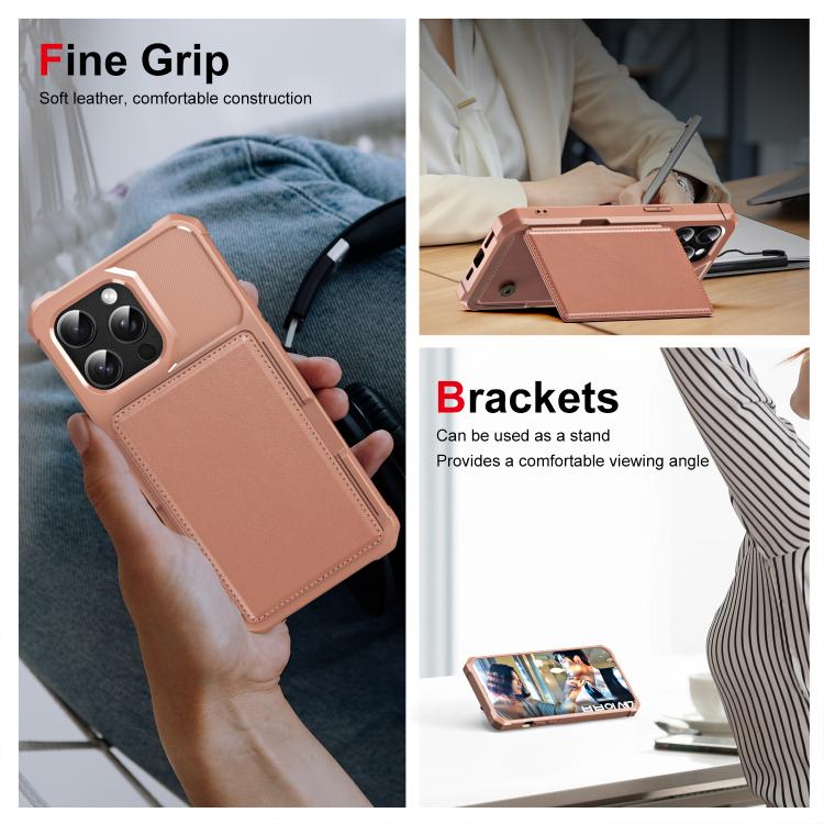 Funda de Cuero con Tapa Horizontal para iPhone 14 Pro Max con Tarjetero (Oro Rosa)