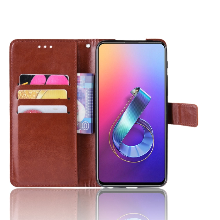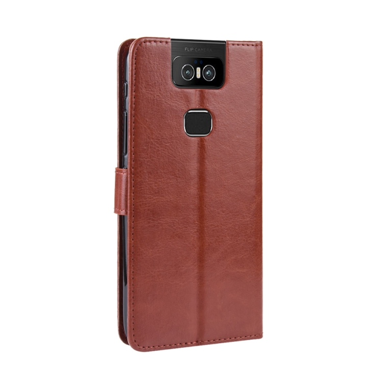 Funda de Cuero Retro con Tapa Horizontal para Asus Zenfone 6 Zs630Kl con Soporte y Ranuras (Marrón)