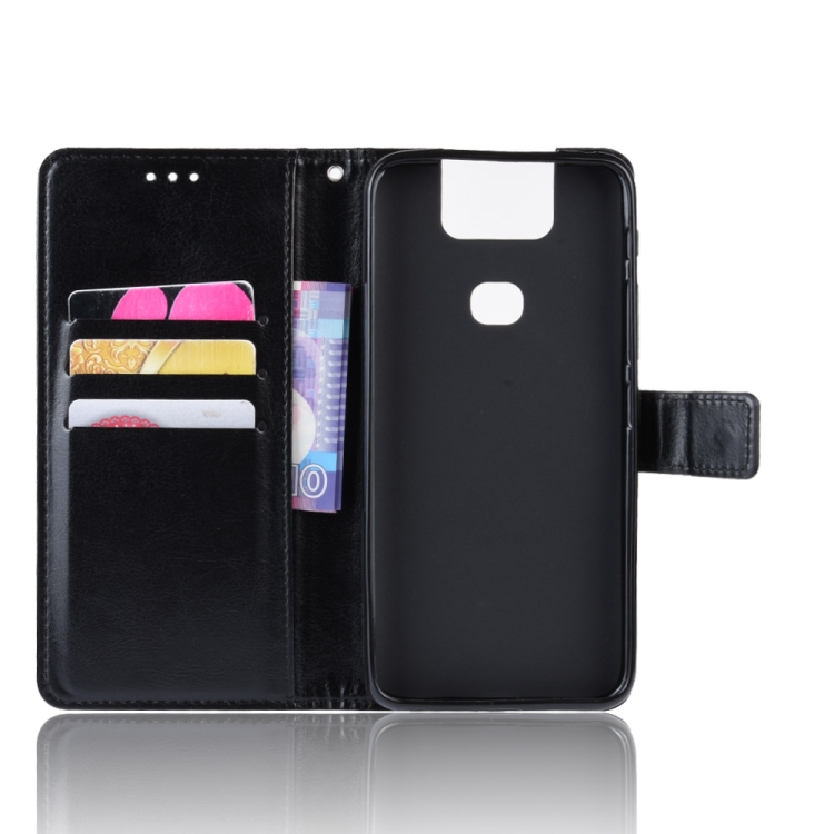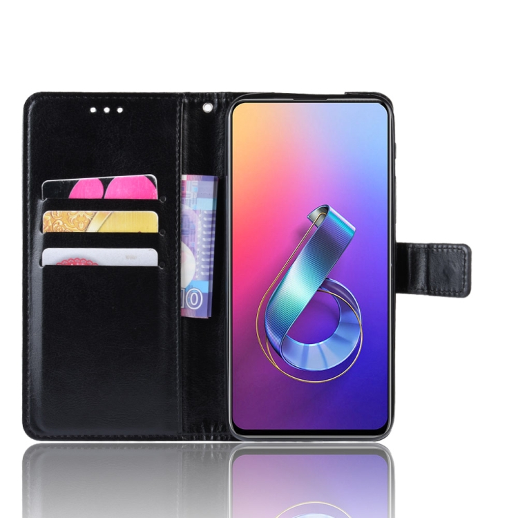 Funda de Cuero con Tapa Horizontal Retro para Asus Zenfone 6 Zs630Kl con Soporte y Ranuras (Negro)