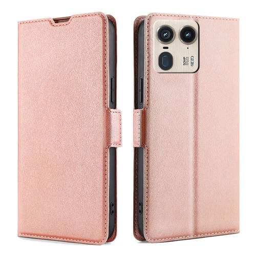 Funda de Cuero con Tapa Horizontal y Hebilla Lateral Ultradelgada para Motorola Edge 50 (Oro Rosa)