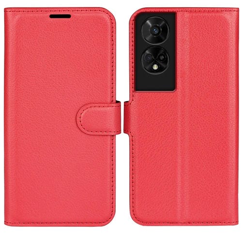 Funda de Cuero para TCL 50 5G con Tapa Horizontal y Textura de Lichi con Soporte (Rojo)