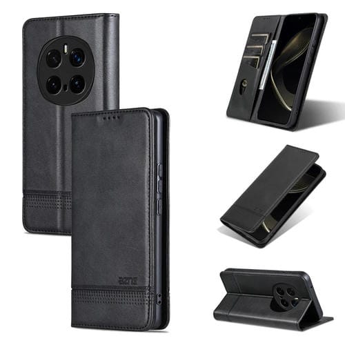 Funda de Cuero con Tapa Magnética Textura Piel de Becerro para Honor Magic7 Pro (Negro)