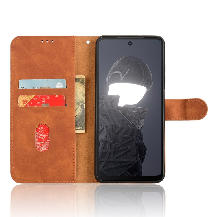 Funda de Cuero con Tapa Magnética para Teléfono HMD Fusion Skin Feel (Marrón)