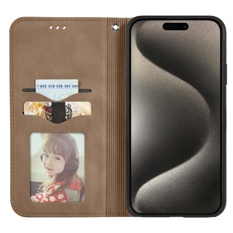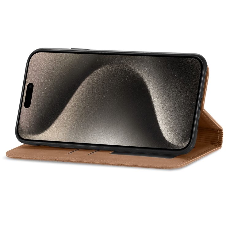 Funda de Cuero con Tapa Magnética para iPhone 16 Pro (Marrón)